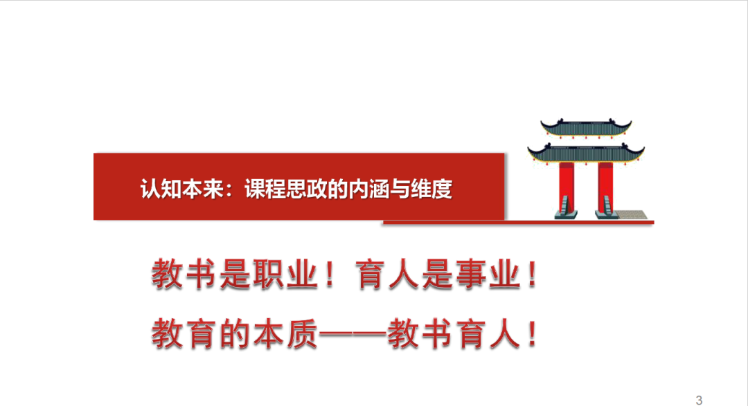 姜晓萍教授从课程思政的概念内涵、重点内容、三重维度等三个方面进行了分析。她明确指出“教书育人是教育的本质”,课程思政内涵即以立德树人为目标,挖掘思政资源,实现知识与育人的无缝衔接。