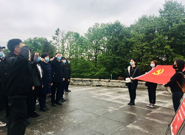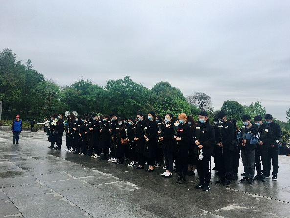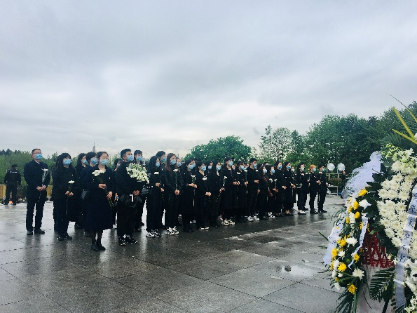 早晨8点45分,我院同学们统一身着黑色服装,佩戴口罩,同华西公卫、化工和物理三院的同学共同乘坐校车前往成都市烈士陵园。到达陵园后,同学们有序排成四列纵队,由工作人员依次为大家分发祭奠革命英烈的鲜花。在陵园内志愿者的统一组织下,同学们迈着庄重的步伐登上了祭奠革命英烈的台阶,先后进行了奏唱国歌、默哀、敬献花篮和鲜花、安静走过革命英烈纪念长廊等仪式。其中,所有党员同志在祭奠仪式结束后,还在革命英烈纪念长廊一旁庄严宣读了入党誓词,重温了入党时的坚定与热血。