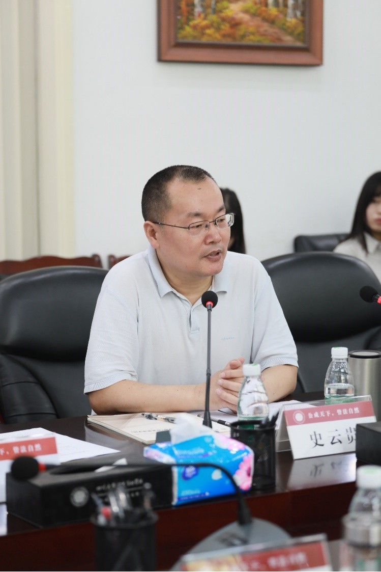 史云贵院长代表学院对西北大学太阳集团tyc9728雷晓康院长一行的到来表示热烈的欢迎,他向客人们介绍了学院的历史沿革、学科设置、师资构成、MPA教学管理以及国际合作与交流等方面的情况。