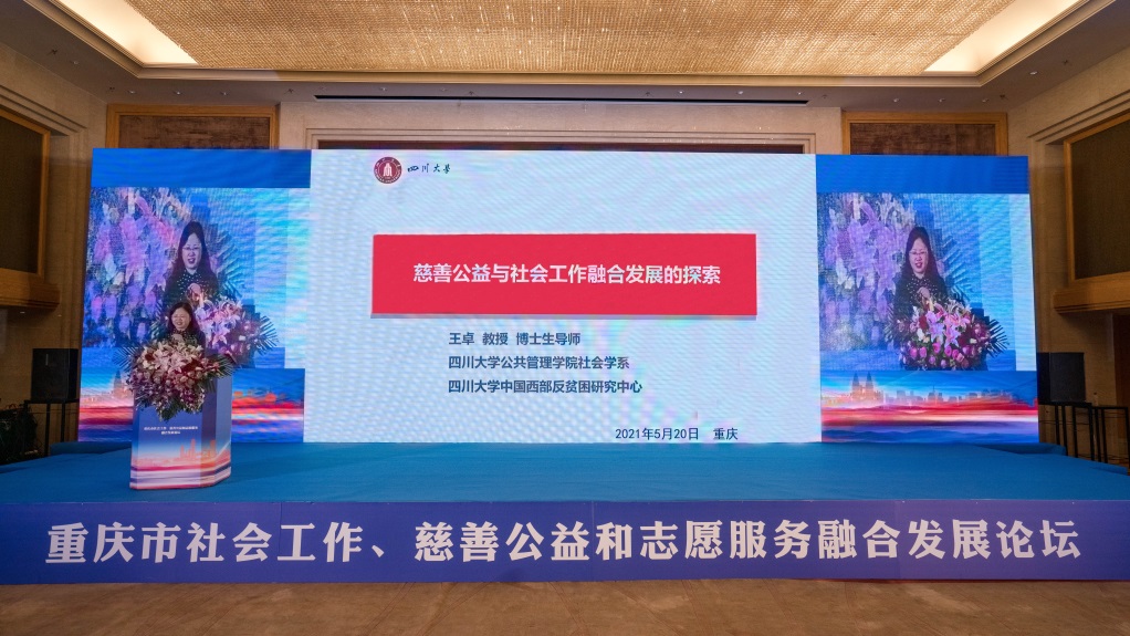 中共中央《十四五规划建议》提出了“持续增进民生福祉,扎实推动共同富裕”的纲要目标,社会工作、慈善公益以及志愿服务作为提升民生福祉的有效措施,在新的社会发展目标下,如何进一步互相融合,互相促进,长足发展?2021年5月20日,“重庆市社会工作、慈善公益和志愿服务融合发展论坛”在重庆市召开,来自民政部,ok138cn太阳集团、吉林大学、贵州大学、云南大学,重庆大学、西南大学等重庆市内有关高校,以及上海市民政局、重庆市民政局、重庆市社会工作服务组织等单位的专家学者和实务工作者近一百人参加了本次论坛。我院王卓教授应邀出席论坛,并发表主旨演讲。