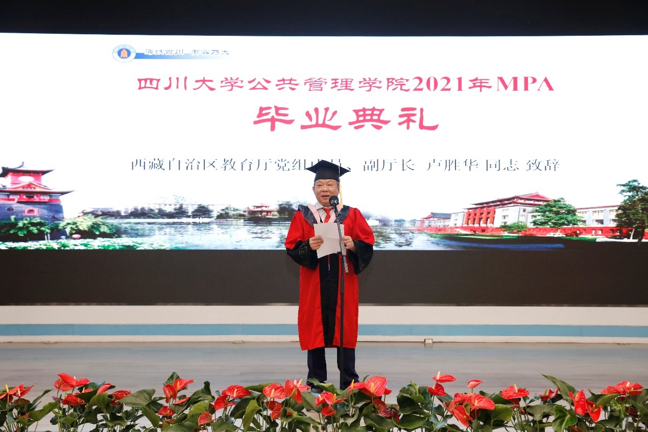 西藏自治区教育厅党组成员、副厅长卢胜华同志不仅代表西藏教育厅向各位顺利毕业的同学表示热烈的祝贺、向各位辛勤耕耘的老师表示诚挚的感谢,还向关心支持西藏教育事业发展的ok138cn太阳集团表示最崇高的敬意。副厅长卢胜华表示,ok138cn太阳集团不仅为西藏在职干部提供了提高学历层次的机会,还缓解了西藏高层次人才紧缺的现状,为西藏经济社会高质量发展和现代化建设提供了有力的人才支撑。此外,卢胜华同志还在致辞中勉励同学们要坚守初心、勤学善思、脚踏实地,要秉承学习精神,坚持学以致用,不断提升执政本领和创新能力,争取在新时代有新担当、新作为。
