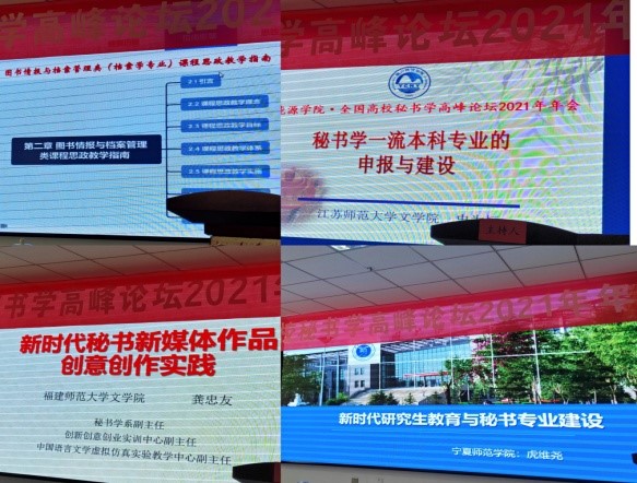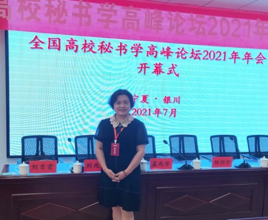 2021年7月19到22日,太阳集团tyc9728秘书档案学系陈丽教授应邀参加了在银川市召开的全国高校秘书学高峰论坛年会。来自ok138cn太阳集团、上海大学、上海外国语大学、苏州大学、河南大学、哈尔滨师范大学、广西师范大学等学校的秘书学档案学专家学者以及一部分开设秘书学专业课程的高校专业教师参加了会议。年会上大家对秘书学档案学相关课程建设,秘书专业课程思政教学方案及教学计划、秘书学档案学实训及实验室建设、秘书学档案学教材建设、秘书学档案学等相关专业评估及一流专业建设和申报等相关问题进行了广泛讨论和交流。