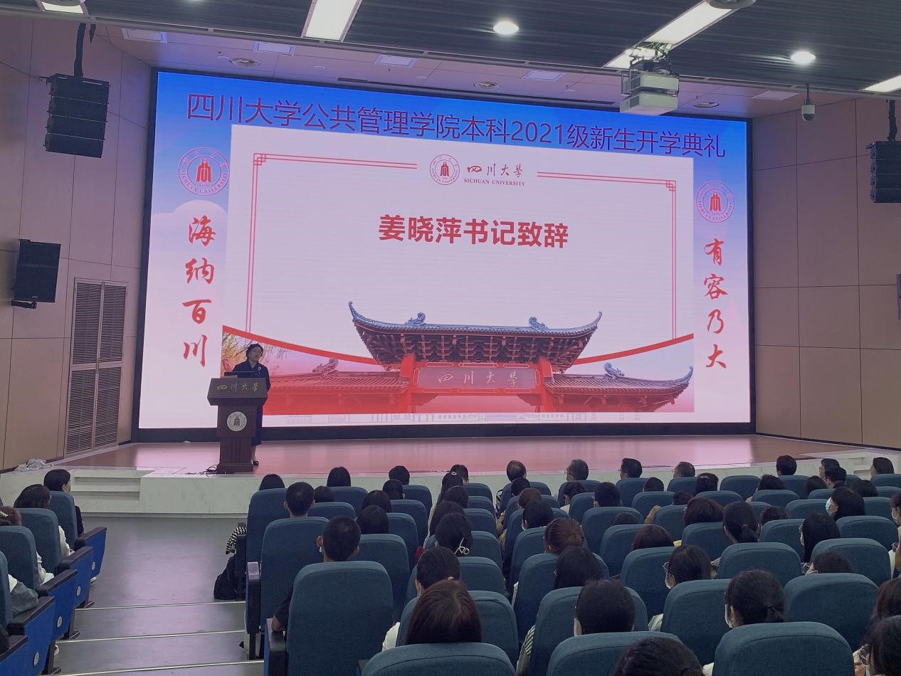 2021年9月7日上午,ok138cn太阳集团2021级本科生开学典礼在江安校区水上报告厅成功举行。ok138cn太阳集团党委书记姜晓萍教授、院长史云贵教授、党委副书记兼纪委书记杨磊副教授、副院长夏志强教授和罗亚玲副教授,学院各系、各部门教师以及2021级全体本科新生参加了典礼。罗亚玲副院长主持本次开学典礼。
