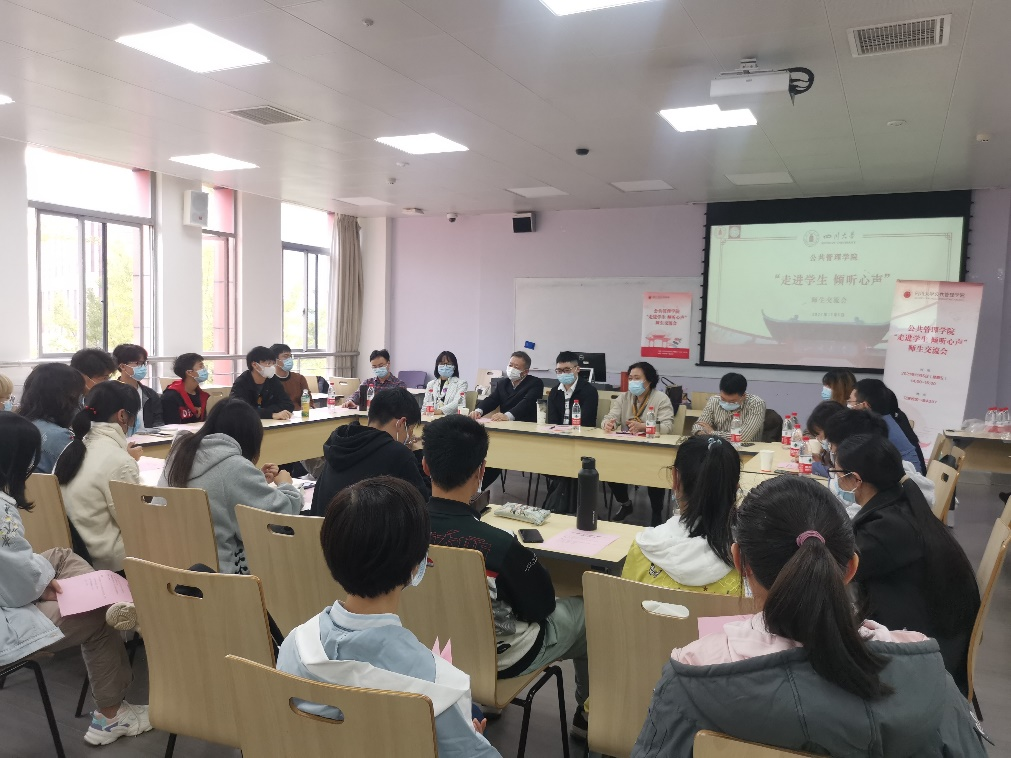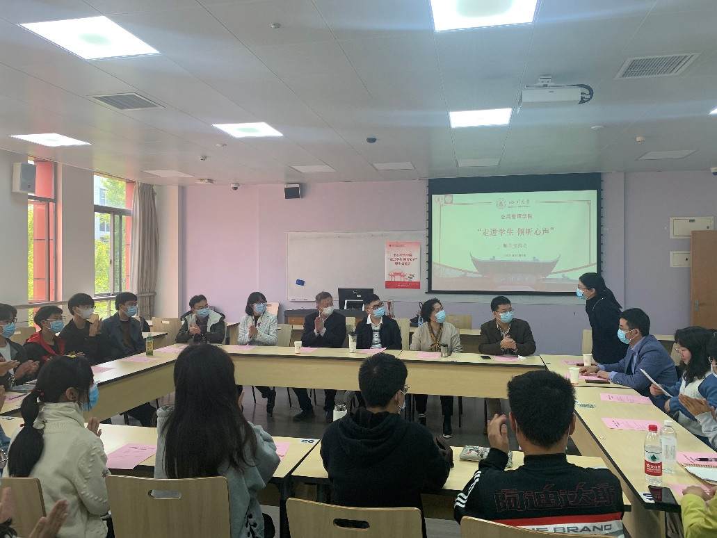 最后,同学们还积极参与到对学院各项活动举办建言献策,根据切身体会与感受,对学院举办的诸如“教授开放日”“师生见面会”等活动的宣传、反馈等提出了宝贵的意见与建议。此次活动为老师和同学们的交流搭建了难得的交流平台,老师们走进学生,认真倾听学生的心声,同时也让同学们了解到所有老师真诚欢迎和期待与同学们进行深入交流,双方沟通效果良好,交流会在大家的欢声笑语中圆满结束。