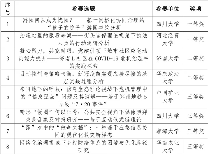 经过充分准备和激烈角逐,来自我院的两支学生队伍脱颖而出。由行政管理系的刘锐副教授指导,行政管理专业2020级本科生夏凡、冯城妮、贾子涵,以及劳动与社会保障专业2020级本科生单浩楠、苏祎凝组成的“快乐星球队”,完成了《游园何以成为忧园?——基于网格化协同治理的成都市“孩子的院子”游乐园事故分析》的案例分析报告,并通过决赛现场8分钟的陈词环节和7分钟的答辩环节,表现优异,荣获大赛一等奖。