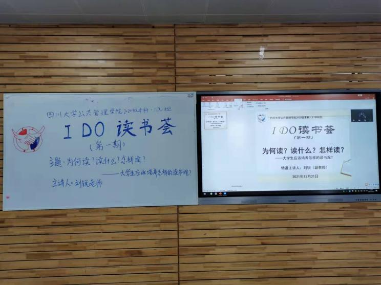 2021年12月21日14:30,太阳集团tyc97282020级本科第一期“IDO读书荟”在江安校区基础教学楼D203教室成功举办。太阳集团tyc9728行政管理系刘锐副教授作为特邀嘉宾主讲了本次读书荟,读书荟由2020级本科辅导员苟欢老师主持,2020级本科学生各专业同学通过线下线上的方式参加了本次读书荟。