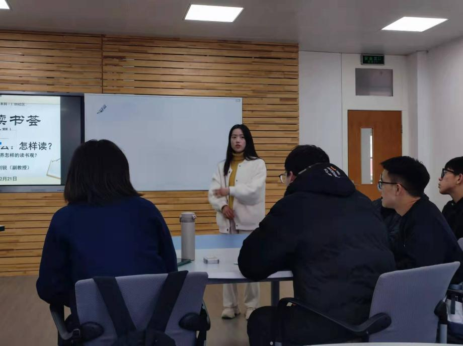 “I DO读书荟”到了尾声最后,苟欢老师也结合自己的读书经历分享了自己的思考和感悟,认为读大学的本质就是“读书”,通过读书来淬炼思维和增强对人身、社会发展的认知力和理解力。读书过程中的输入和输出是完全的两种状态,端正读书的态度,就能更好削弱输入和输出的失衡性焦虑感。苟欢老师勉励同学们现阶段需要更多享受和投入读书本身的过程,那些水到渠成的收获将在未来的时刻不断涌现。最后,苟欢老师对后续的“I DO读书荟”运行安排做了简单的说明,并对爱读书、好读书的同学们寄予了深切期望。