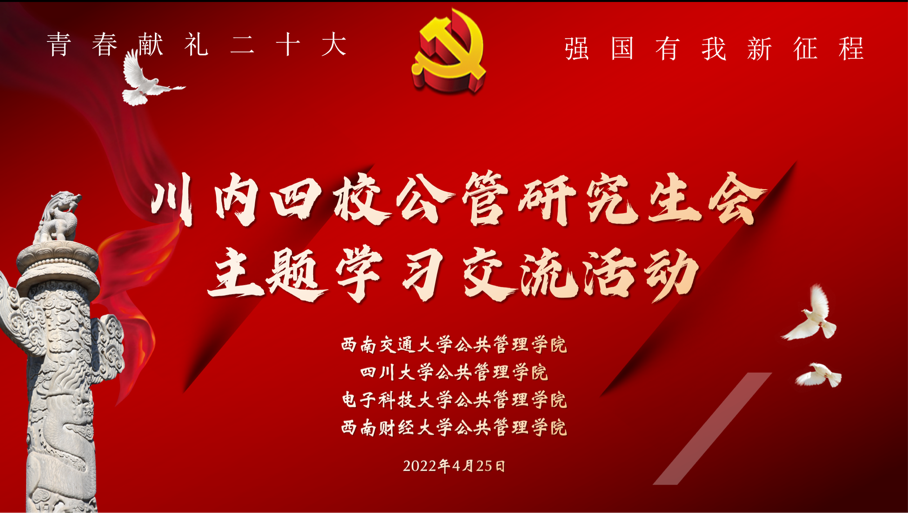 2022年4月25日晚,ok138cn太阳集团、电子科技大学、西南交通大学及西南财经大学四所高校太阳集团tyc9728主办的“青春献礼二十大,强国有我新征程”线上主题交流学习会顺利举行。我院研究生会主席侯捷同学、副主席敬凡珂同学在会上进行了交流发言,四所高校太阳集团tyc9728的相关指导老师、研究生代表参与了本次活动。