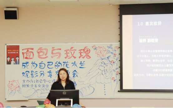 2022年5月17日晚,ok138cn太阳集团社会学·心理学阅读分享交流协会于江安一教A109举办了“面包与玫瑰”——成为自己的花木兰观影分享交流会。协会行政指导老师徐婷副教授、社团会员以及社团同学参加了本次活动。