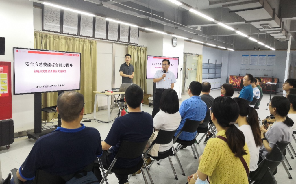 6月23日下午,我院师生赴江安校区灾后重建与管理学院开展了消防安全知识与应急技能培训。学院党委书记韩杰、工会主席兼实验室安全分管领导刘玲、各实验室负责教师、实验室管理教师、行政学工教师代表、学生代表等人参加了本次培训。