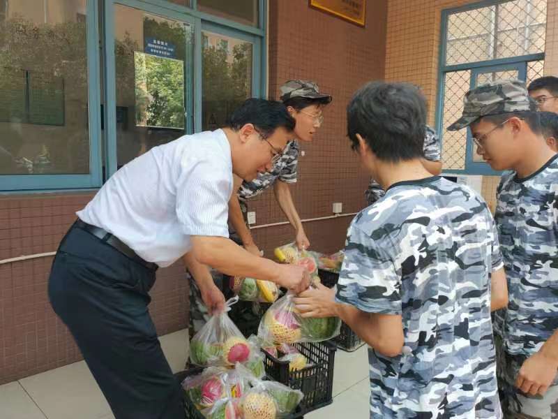 尽管烈日炎炎、军训辛苦,但是水果发放秩序井然,现场氛围温馨融洽。学院领导深入学生宿舍慰问军训学子,使同学们在高强度的训练外感受到学院领导对自己的关爱、呵护与重视,同学们都备受鼓舞,脸上洋溢着幸福的笑容,纷纷表示感谢学院和领导的悉心关怀,并表示接下来会以更加饱满的热情、更加挺拔的姿态积极投入到后期的军事训练中,争取在合唱比赛和军训汇报演出中展现出公管学子的独特风采!预祝2021级同学们在本届军训中取得优异成绩,圆满完成任务。