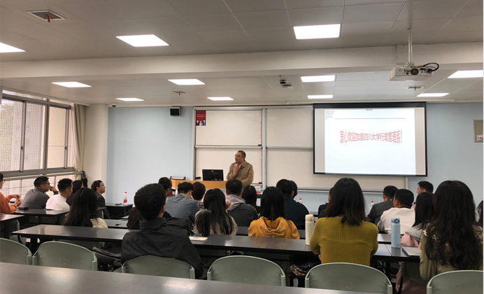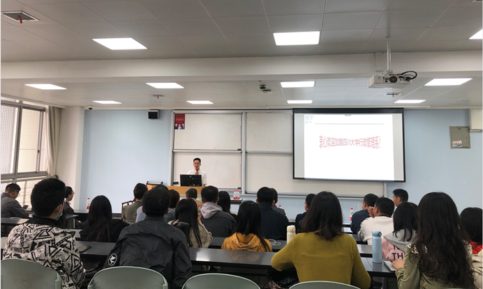 随后,欧阳火亮博士代表行政管理系全体教师发言。欧阳老师以“怎么证明自己读过研”为主题,将自己在北京大学的读研经历娓娓道来。识别人性之善恶,知晓自身所欲求,注重积累内在的知识修养,而非外在的硬件设施,是欧阳老师给予广大硕士新生的有益启发。