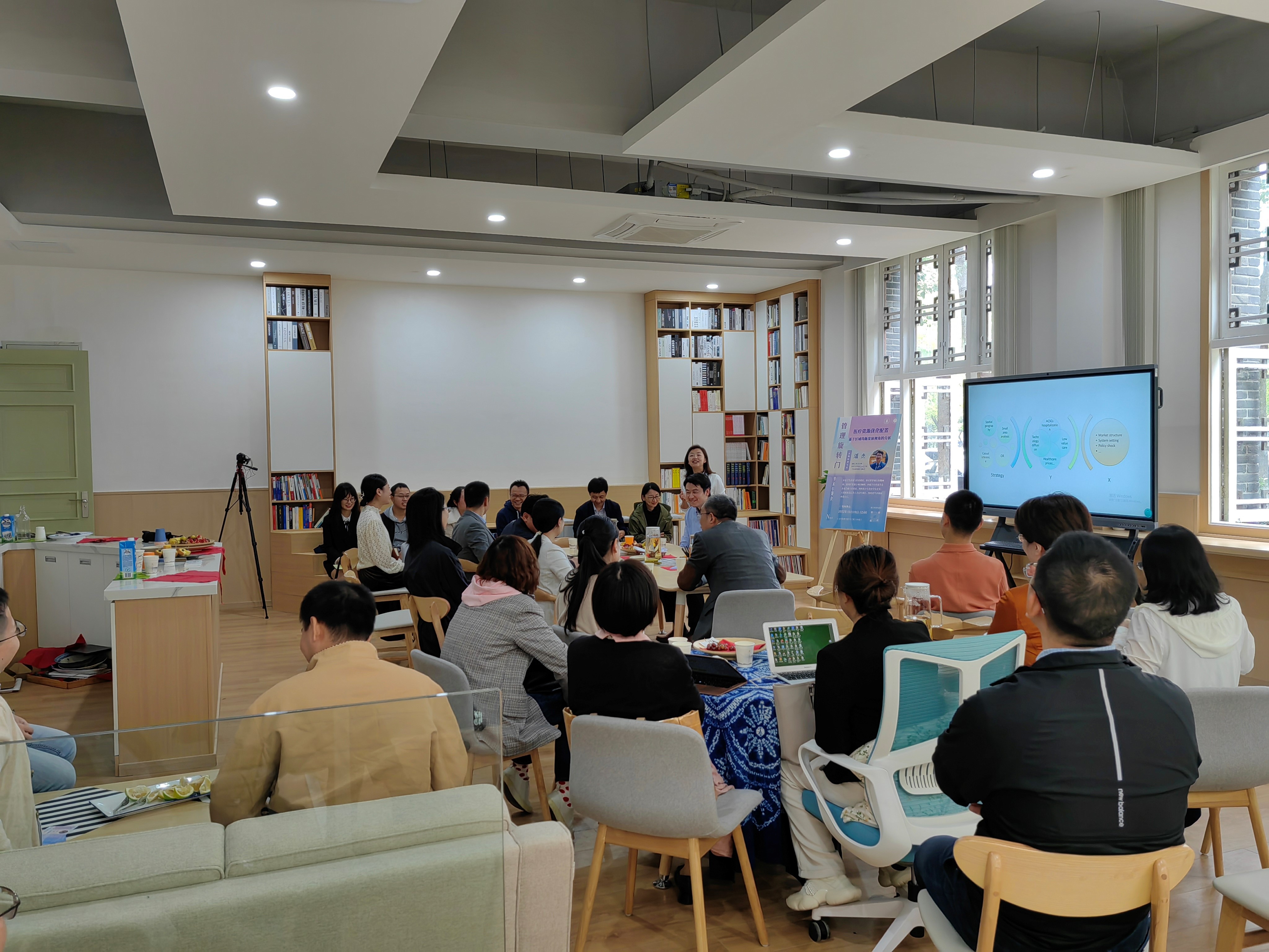 随后,潘杰教授分享了其研究成果“医疗资源优化配置:基于区域均衡发展视角的分析”。此项研究以我国医疗资源配置为例,将地理学、医学、信息技术等多学科的方法运用到公共政策研究中,为公共决策提供了现实路径和解决方案。交流中,老师们踊跃互动,纷纷表示深受启发,并表达了紧密开展跨学科合作的热切期盼。