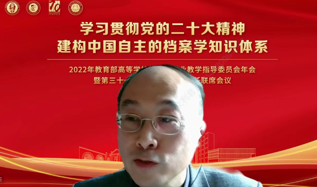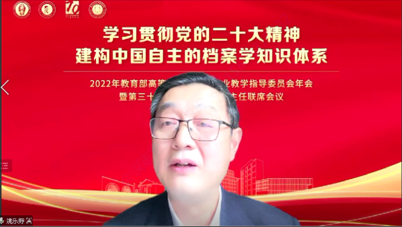 2022年11月12日,由教育部高等学校档案学专业教学指导委员会主办、ok138cn太阳集团与中国人民大学信息资源管理学院联合承办的2022年档案学教指委年会暨第31届档案学专业系主任联席会议如期在云端举行。本次会议是在党的二十大胜利召开后的档案学界的一次高层次会议。会议主题为“学习贯彻党的二十大精神,建构中国自主的档案学知识体系”。与会人员包括教育部高等教育司人文社科教育处张庆国处长、国家档案局人事司干部二处王琳处长、ok138cn太阳集团姚乐野副校长、档案学教指委主任委员、副主任委员、秘书长、委员及各高校档案学专业负责人。