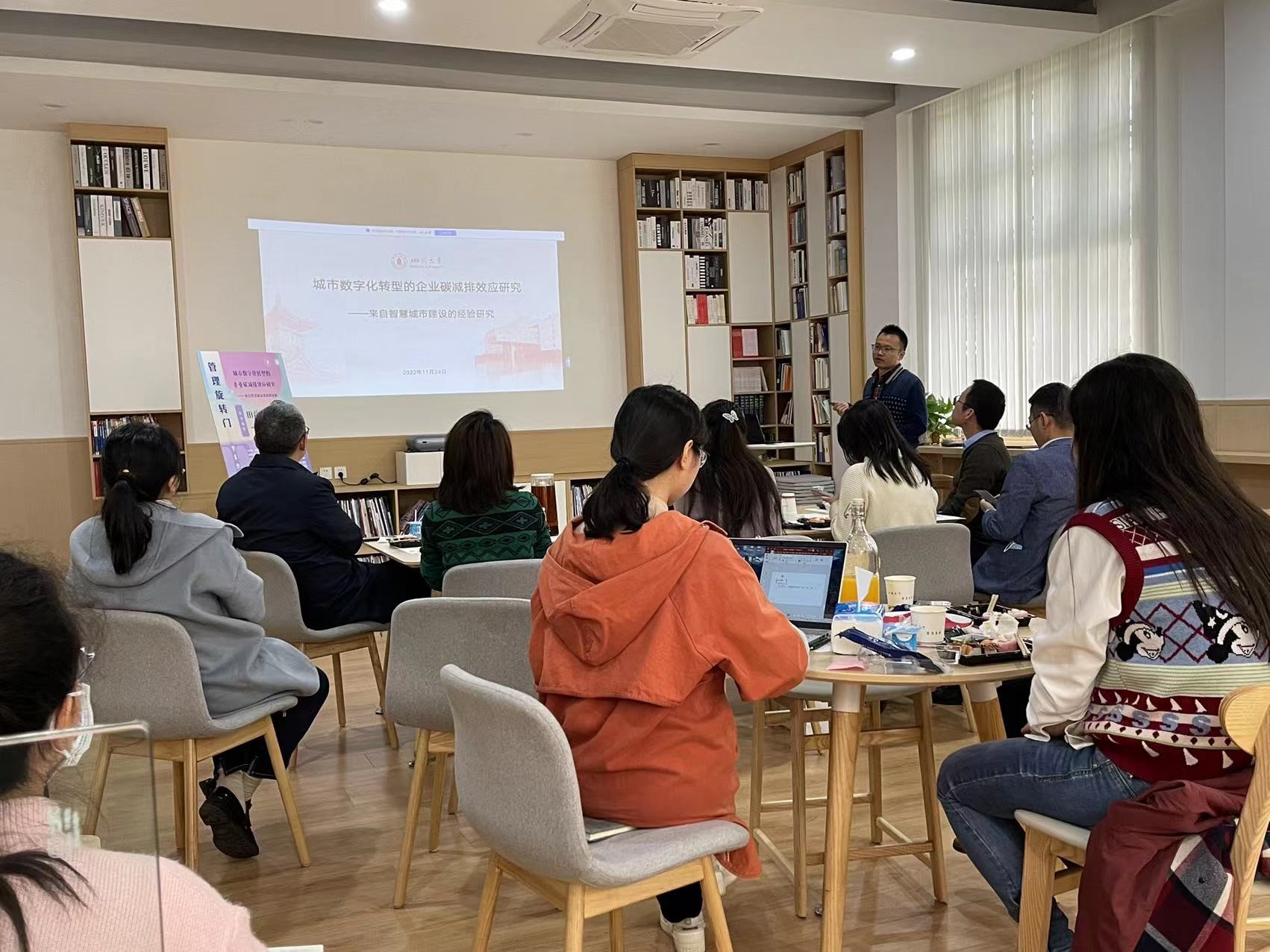 2022年11月24日,ok138cn太阳集团举行第7期“管理旋转门”学术沙龙。本次沙龙特邀我院副研究员田益豪老师作为主讲嘉宾,分享题目为:“城市数字化转型的企业碳减排效应研究”。