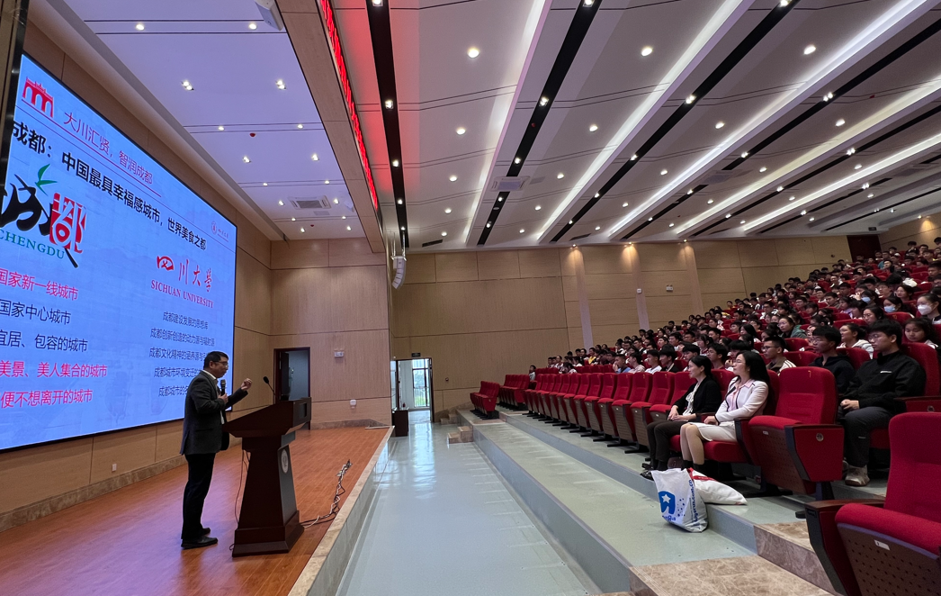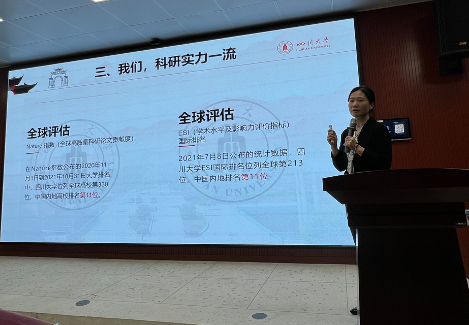 下午,招生组来到广西另一所名校柳州铁一中学,与该校领导及高三年级组相关老师进行深度交流。随后,招生组老师为高一、高二的学生进行了讲座,廖爱民副主任介绍了ok138cn太阳集团的办校历史、本科教育、学科实力及校园环境,希望在同学心中播下一颗报考川大的种子。曾菊梅副教授为同学们带来《魔高一尺,道高一丈:传染病药物发现》的科普讲座,用简洁易懂的语言向同学们介绍医学类相关知识,点燃同学们从事科学研究的热情。