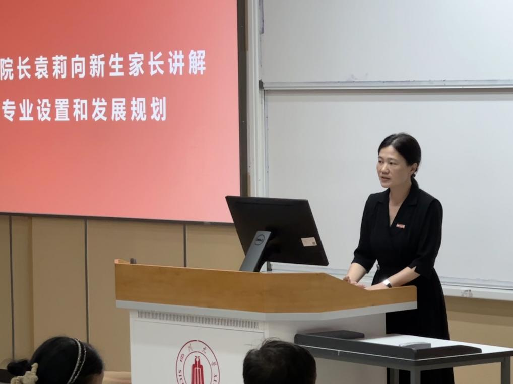袁莉详细介绍了学院的专业设置和发展规划,强调家校联动、师生沟通的重要性,介绍了保研考研、创新创业、学术交流、科研训练等发展路径和各个专业的相关信息,全面呈现了川大学子未来发展的无限可能;呼吁新生了解专业内容、做好生涯规划、把握发展机遇,主动沟通、刻苦学习,积极参与校内创新与科研项目,争做文理兼修、全面发展的综合型人才。