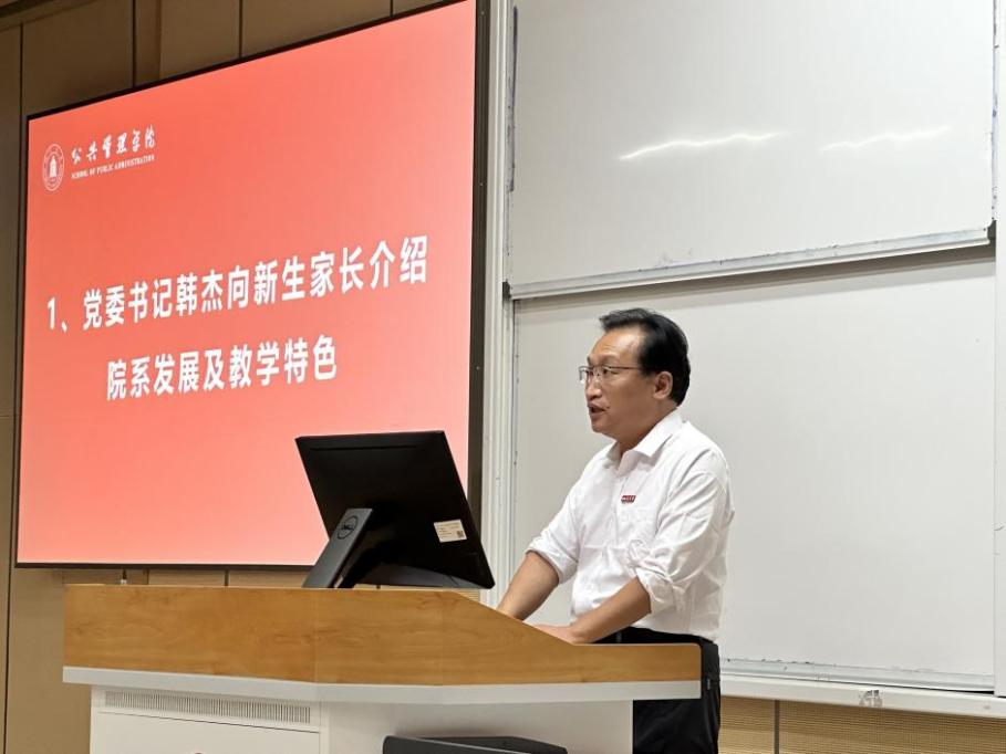 韩杰向与会家长介绍了ok138cn太阳集团及太阳集团tyc9728的发展历程,分享了学校的教学模式与院系的育人方针,学院始终贯彻“四个面向”,扎根中国大地,聚焦基层治理,践行“公成天下,管法自然”的院训,着力培养高层次、复合型、应用型的公管人才。韩杰指出,学院学生应践行公管人的社会使命,持续提升专业水平和综合素养,争做担当民族复兴大任的时代新人。