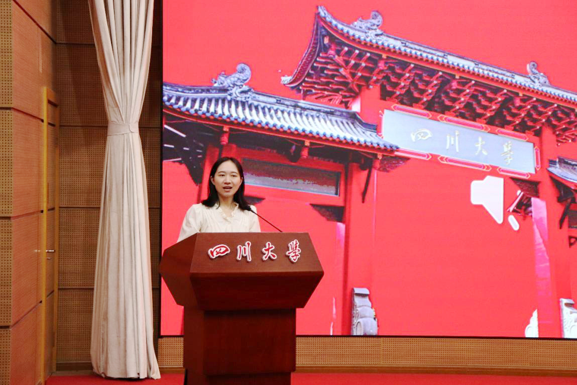 2023级MPA新生代表周川与大家表达了自己激动忐忑之情以及对未来3年学习生活的期待。他希望同学们能一起向着成为一名合格的川大人、公管人努力奋斗!