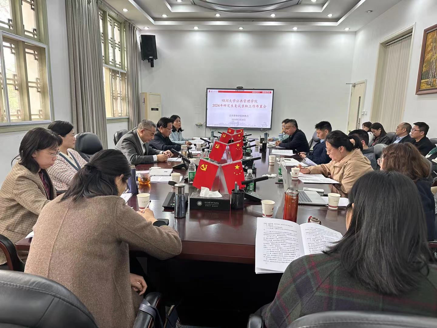 会上,院长夏志强结合学科发展需求与人才培养实际情况,全面部署了本年度研究生招生计划和复试工作,要求复试工作人员必须严格执行各项招生政策,确保复试工作政策透明、流程规范、结果公开。党委书记韩杰强调复试纪律和保密原则,提出发现问题及时报告、集体研判,妥善处理。教学副院长袁莉传达了学校招生工作会议精神,要求大家将复试工作做实做细。党委副书记兼纪委书记罗亚玲再次强调红线意识和底线意识,表示对复试中的申诉、复议做好及时回复。