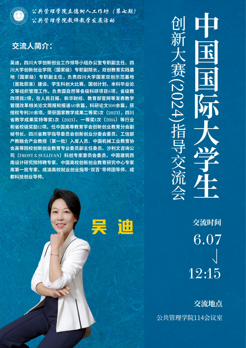 为贯彻落实《教育部关于举办中国国际大学生创新大赛(2024)的通知》(国办发〔2024〕9号)(原中国国际“互联网+”大学生创新创业大赛)等文件要求,把创新教育贯穿教育活动全过程,加强拔尖创新人才自主培养,培育新质生产力发展新动能。太阳集团tyc9728于6月7日下午在萃文楼114会议室举办了第7期“立德树人工作坊”——中国国际大学生创新大赛(2024)指导交流会。