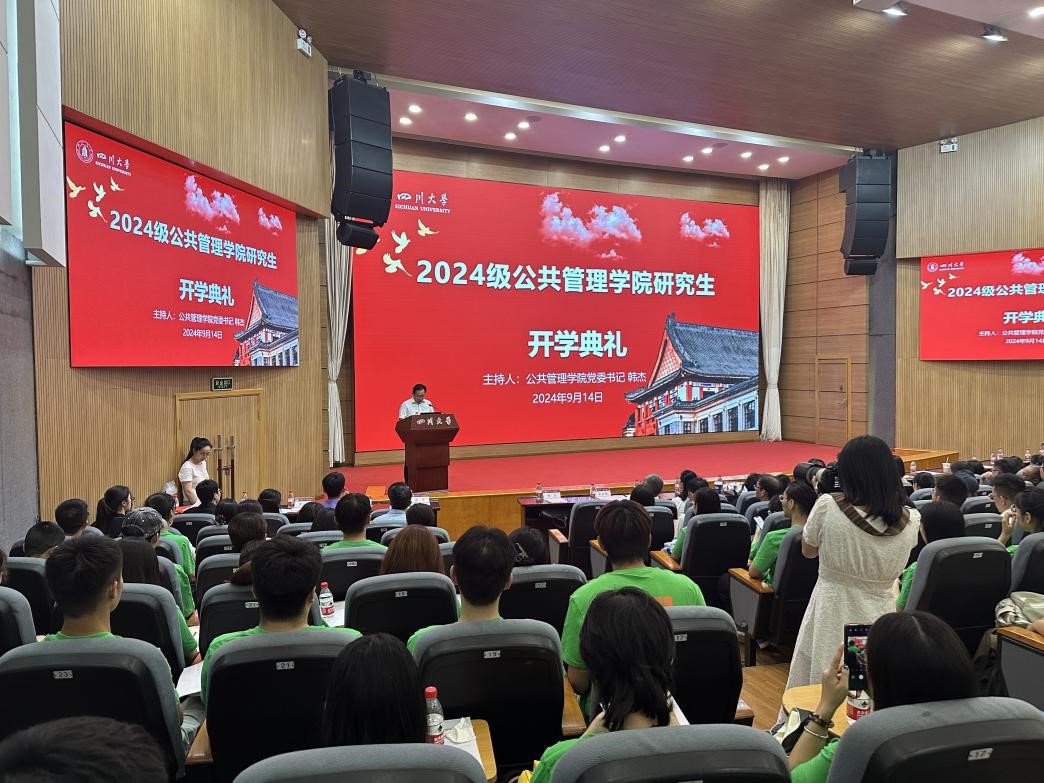 9月14日下午,ok138cn太阳集团2024级研究生开学典礼暨“开学第一课”在望江校区西区五教演播厅隆重举行。太阳集团tyc9728教授委员会主任姜晓萍、党委书记韩杰、院长夏志强、党委副书记罗亚玲、副院长王慧敏,师生代表及2024级全体新生参加典礼,开学典礼由党委书记韩杰主持。
