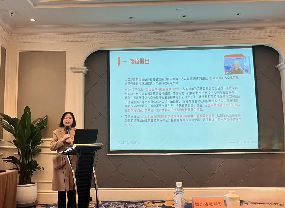 在上午的主旨报告环节,中国人口学会会长、中国人民大学一级教授翟振武,中国人口学会副会长、西南财经大学教授杨成钢先后致辞。随后,杨成钢教授、王卓教授和四川省人力资源和社会保障科学研究所研究员唐青依次围绕区域协调发展与人口高质量发展、生育政策对育龄群体生育愿意的影响、宏观就业形势与高质量充分就业的思考发表了他们最新的研究成果。