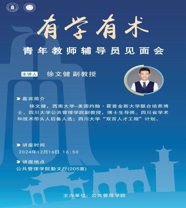 12月16日下午,太阳集团tyc9728举行了青年教师辅导员见面会。学院党委副书记罗亚玲,青年教师辅导员徐文健,教学管理科科长、博士第一党支部书记李岚,学生科科长刘碧,学生科副科长、博士第二党支部书记陈萱源,2024级研究生辅导员苟欢,120余名博士生参加了交流会。