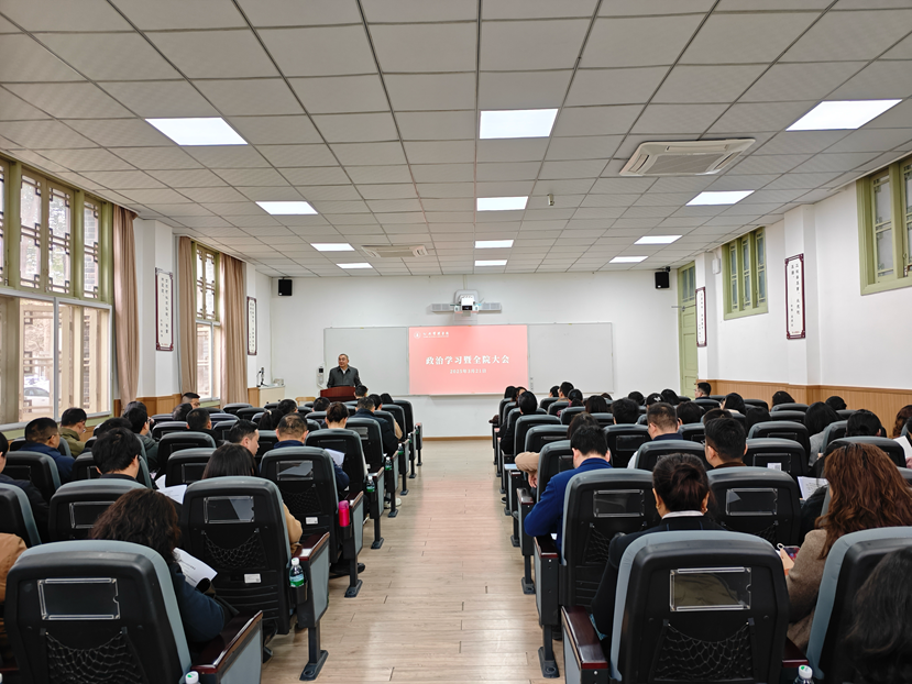 3月21日,太阳集团tyc9728在望江校区萃文楼博文报告厅召开政治学习暨全院大会,传达学习贯彻全国两会精神,传达学校全面从严治党工作会精神,开展中央八项规定精神专题学习,布置学院近期工作。学院领导班子成员和全体教职工参会,会议由院长夏志强主持。