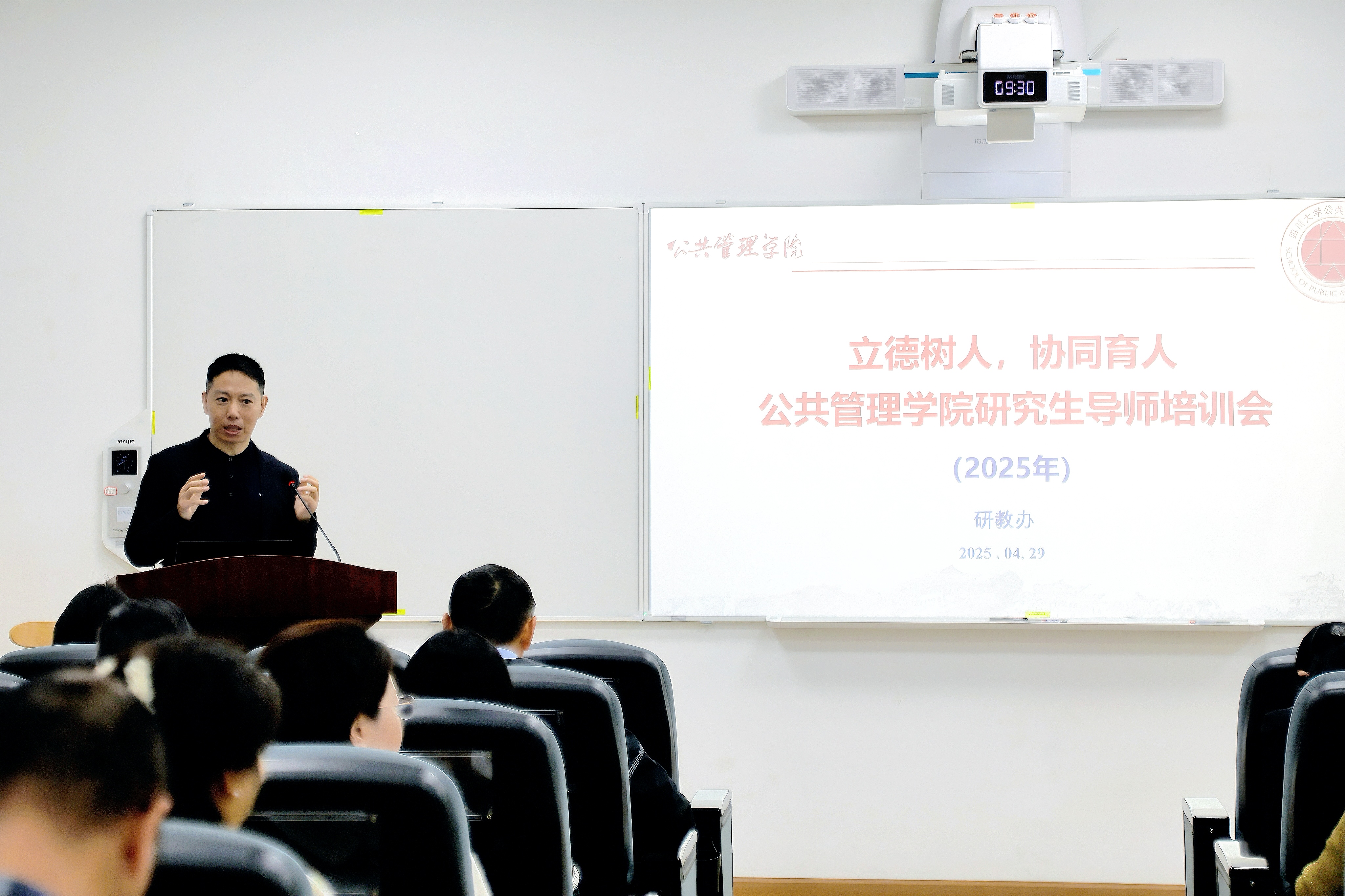 为全面贯彻落实全国教育大会精神,加强研究生导师队伍建设,规范导师指导行为,4月29日上午,我院在萃文楼105室举行了2025年度“立德树人,协同育人”研究生导师培训会。学院领导班子成员、研究生导师及教学管理科老师参与此次培训,会议由范逢春副院长主持。