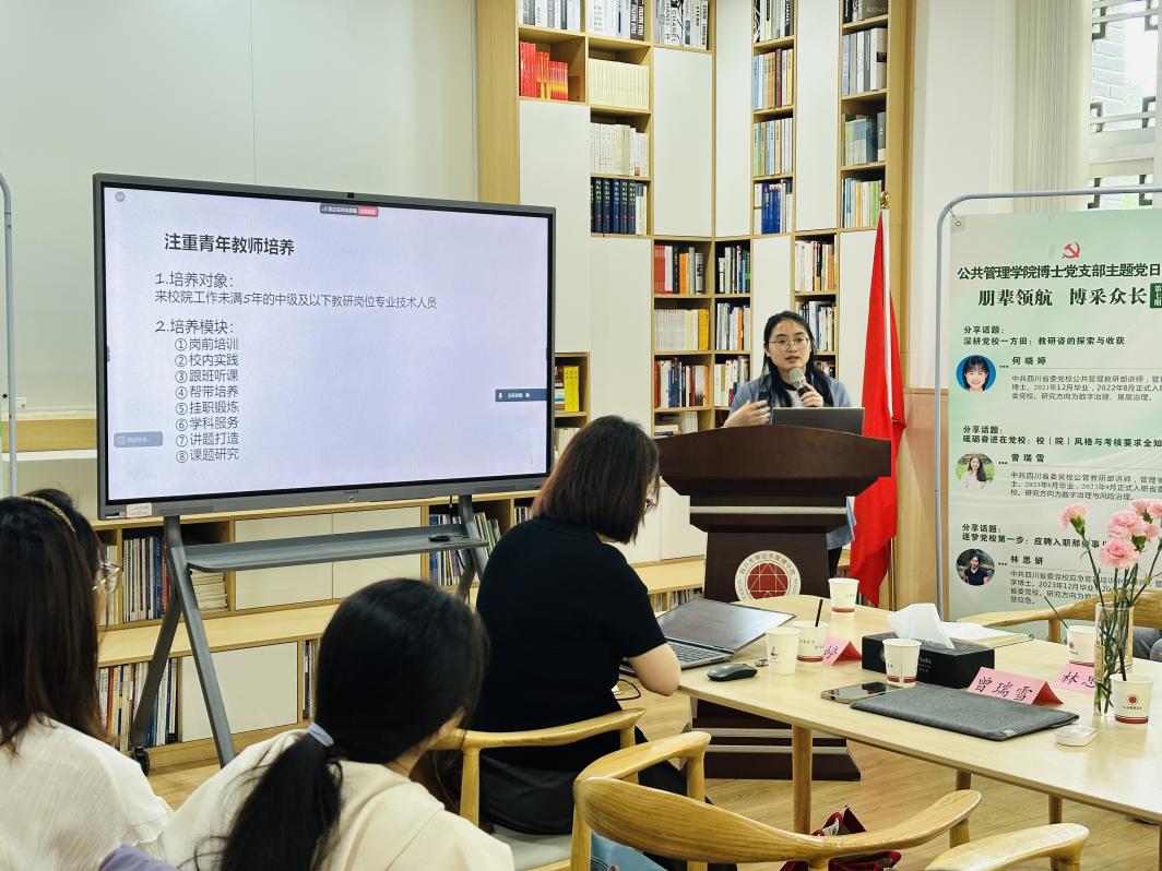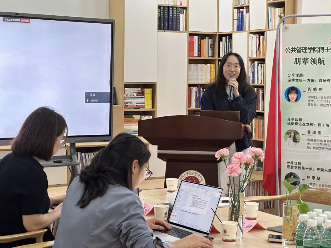 为深化校地党建联建,助力青年学者成长与职业规划,ok138cn太阳集团博士生第一、第二党支部于4月29日共同举办了第七期“朋辈领航·博采众长”主题党日活动。本次活动特邀中共四川省委党校何晓婷、曾瑞雪、林思妍三位老师分享了在党校求职及工作的经验。李岚老师主持会议,部分博士生和干部教育学硕士生通过线上线下联动参会。