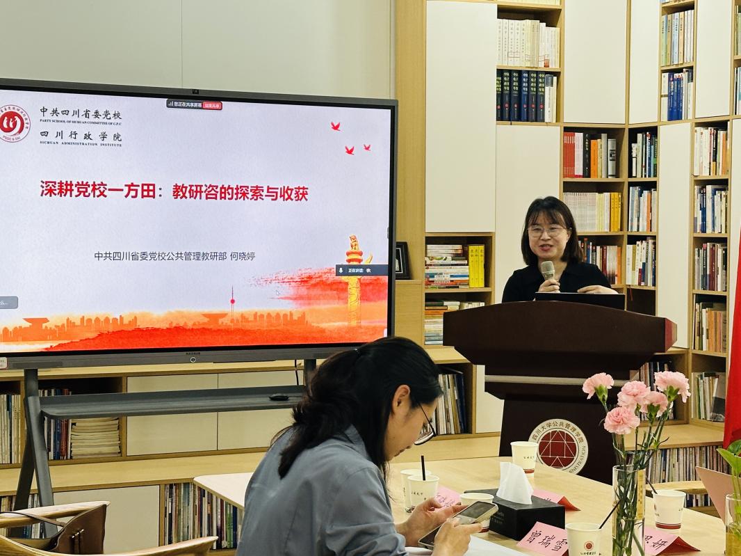 何晓婷老师以《深耕党校一方田:教研咨的探索与收获》为题,重点介绍了党校教师在教学、科研、咨政三方面的工作内容与特点,强调理论与实践融合的党校育人特色。