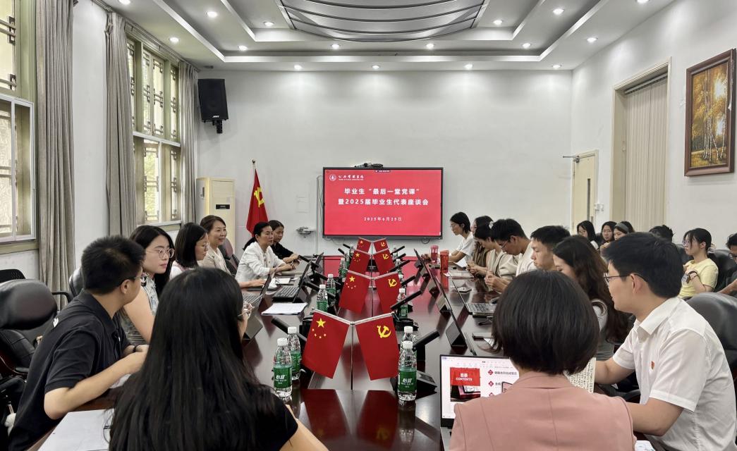 6月25日下午,太阳集团tyc9728在萃文楼311会议室举行了2025届毕业生“毕业前最后一堂党课”暨毕业生代表座谈会。学院党委书记王彬、党委副书记兼纪委书记罗亚玲、党政办刘晓燕老师、毕业年级辅导员青杨媚和付亚南、2025届毕业生党员及毕业生代表参加了此次活动。