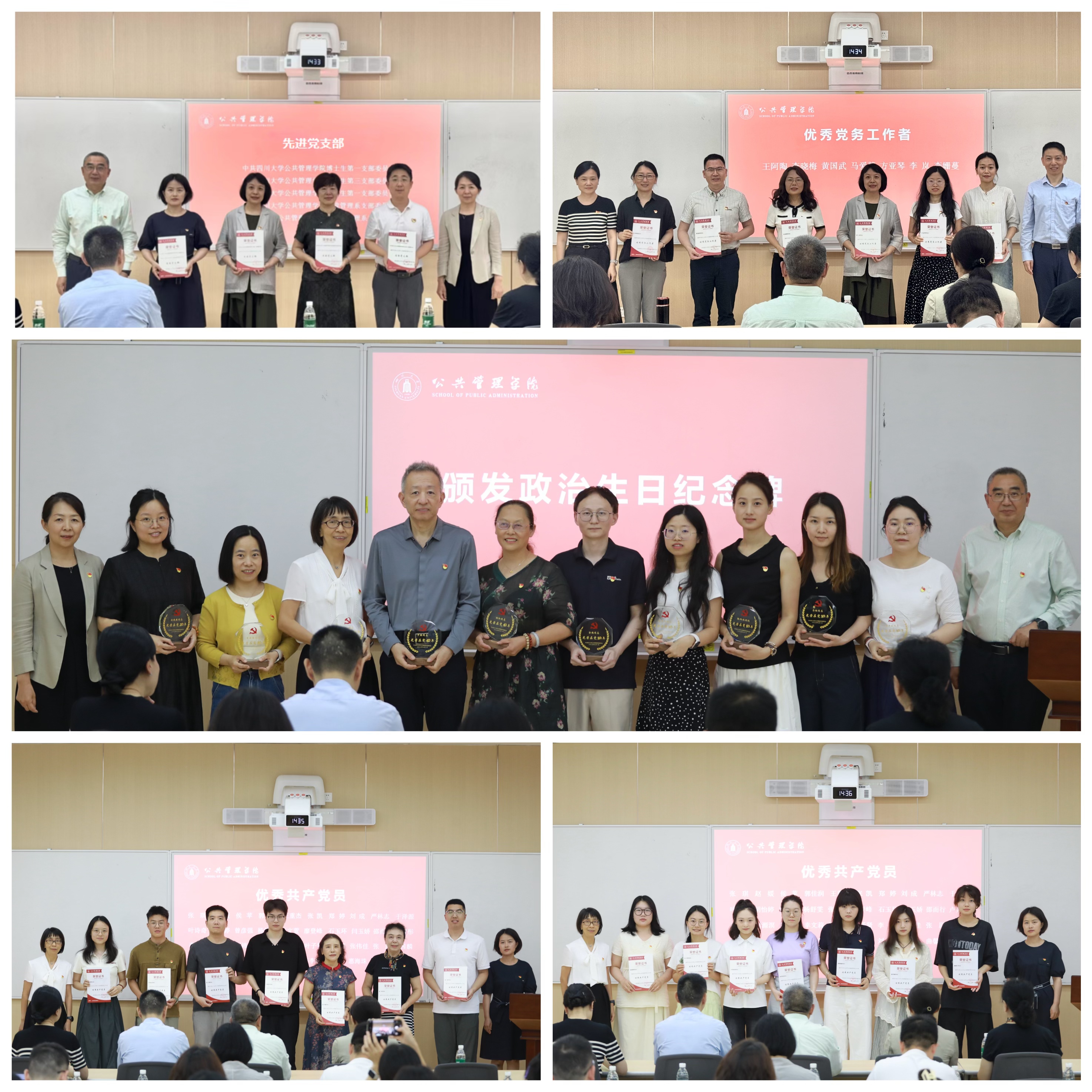 院长夏志强宣读表彰决定;学院领导班子成员、党委委员为受表彰的对象颁奖,为过“政治生日”的党员颁发纪念牌。