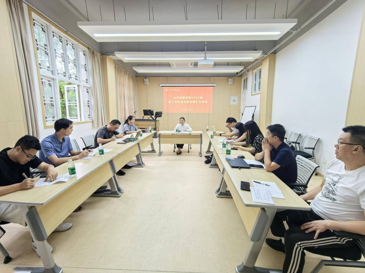 罗亚玲副书记通报学院上半年纪检工作,组织与会人员进行工作交流并开展集中谈话。她强调,一是要提高政治站位,筑牢思想根基,深刻认识违规吃喝问题的政治危害;二是要加强理论学习,坚持以案为鉴,自觉抵制违规吃喝歪风;三是各支部要做好严禁教职工违规吃喝的廉洁提醒,全体教职工务必以立德树人为根本使命,共同营造风清气正的校园生态。