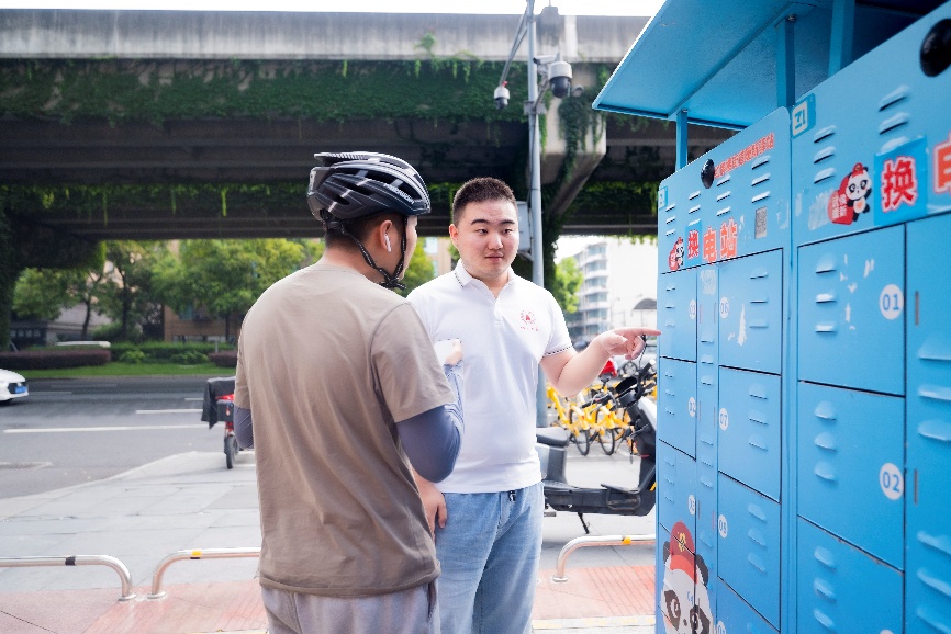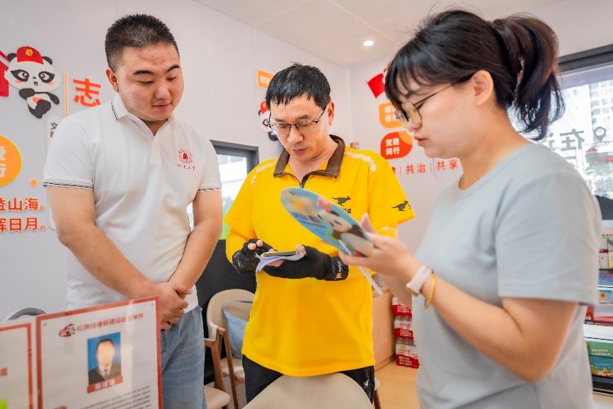 图为团队成员为骑手解决问题