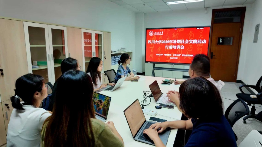 图为实践团队召开行前培训会