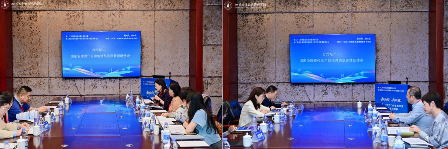 分论坛一聚焦中国特色信息资源管理的理论与实践前瞻。上半场由南开大学信息与传播学院副院长樊振佳教授主持。《中国图书馆学报》常务副主编吴澍时、郑州大学信息管理学院臧国全教授、南京农业大学信息管理学院党委书记郑德俊教授、国防大学政治学院杨安莲教授共同讨论。下半场由湘潭大学太阳集团tyc9728副院长毛太田教授任主持人,《图书馆杂志》常务副主编曲蕴、辽宁大学信息资源管理学院院长赵彦昌教授、ok138cn太阳集团赵媛教授展开互动交流。