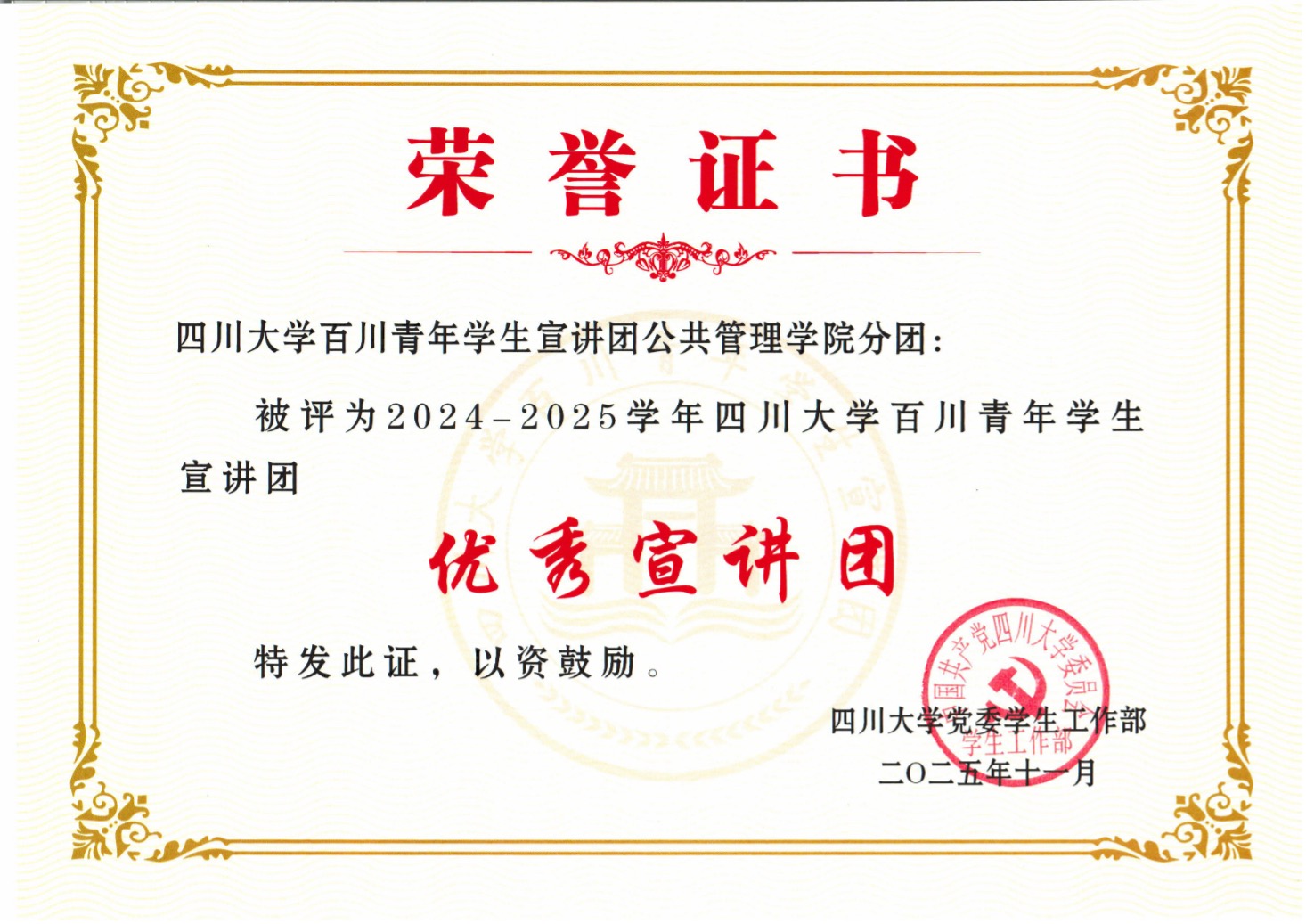 此次表彰既是对我院宣讲工作的高度认可,也是对全体团员持续奋进的鞭策与激励。未来,太阳集团tyc9728分团将继续秉持“公成天下,管法自然”的院训精神,用青年话语传递时代强音,以专业素养讲好中国故事,为推动百川宣讲工作高质量发展贡献更多公管智慧与力量!