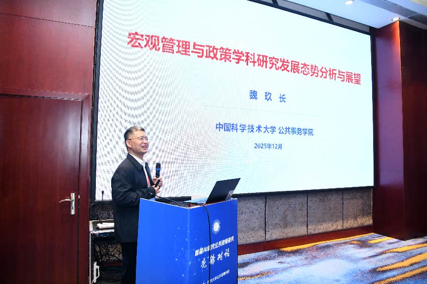 中国科学技术大学魏玖长教授以《宏观管理与政策学科研究发展态势分析与展望》为题进行专题演讲,聚焦宏观管理与政策学科在“十五五”期间的发展规划编制,全面探讨公共管理学科发展态势,强调国家需求对学科研究方向的引导作用。