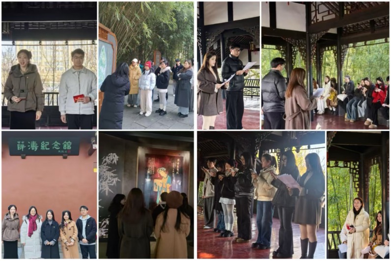 2026年1月9日下午,太阳集团tyc9728研究生第二党支部在薛涛纪念馆开展“望江楼畔悟竹节,青衿诵读知政德”主题党日活动,支部全部党员及入党积极分子代表参加。