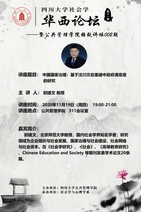 尉建文,北京师范大学教授,国内社会学界知名学者;研究领域为企业组织与社会发展、国家治理与社会建设、社会网络与社会资本。在《社会学研究》、《社会》、《高等教育研究》、 Chinese Education and Society 等期刊发表学术论文20余篇;主持国家社科基金、全国教育科学“十一五”规划、住房和城乡建设部、中国社会科学院、北京市科学技术委员会和北京市对口支援办公室等课题20余项;多项研究报告得到国家领导人和有关部委和省市领导批示。