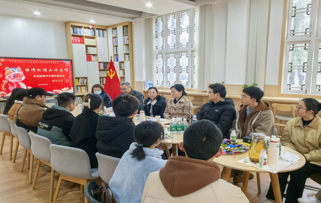 2025年1月15日下午,学院举行了“温情相伴,共沐春晖”家庭困难学生慰问茶话会。学院领导班子、各年级辅导员、学生代表等20余人参加。