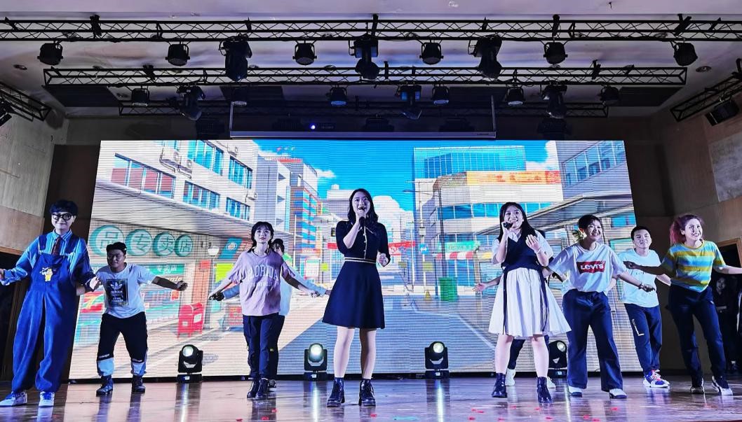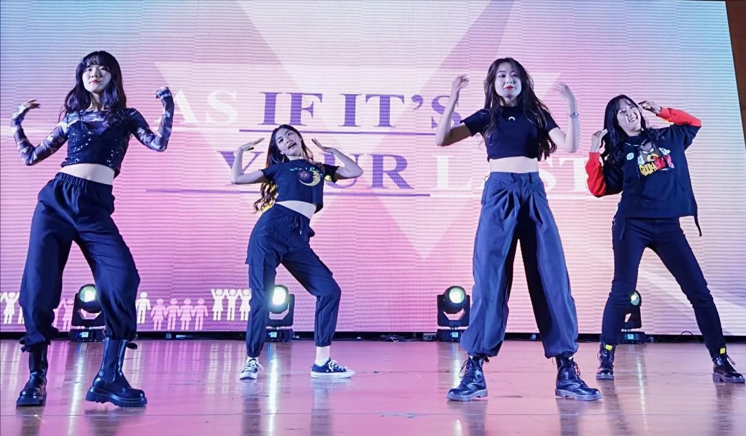 紧接着,演唱节目《随我去粉雾海吧》闪烁着的红色灯光,夹杂着重金属音效,令人仿佛置身在狄俄尼索斯的狂欢现场。简梦婷同学清澈空灵的嗓音点燃了整个会场,陈可同学唱着激昂的Rap从观众席走上舞台,用话筒喷吐出乐曲的火焰。小品《女孩的年龄不要猜》和歌舞《Oh My God》分别以浮夸而起伏的剧情和动感的舞蹈演绎了属于青春的微妙与风华。清新甜美的歌曲演唱《告白气球》为观众递上一杯塞纳河畔的咖啡,为同学们捎去一份浪漫祝福。