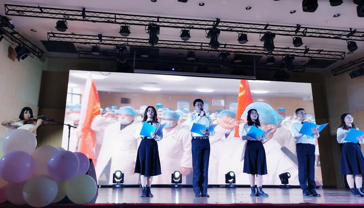 晚会特别节目——诗朗诵《我看见》,五位朗诵的研究生同学将2020年新冠疫情中社会各界在党的领导下,众志成城,顽强战胜新冠疫情的故事娓娓道来,让大家切实看见了我们的制度优势,我们的文化自信,看见了属于这个国家、这个时代的伟大,看到了属于整个中华民族的伟大力量。在五位研究生同学包含深情、铿锵有力而又抑扬顿挫的演讲中,晚会气氛被推向了最高潮。