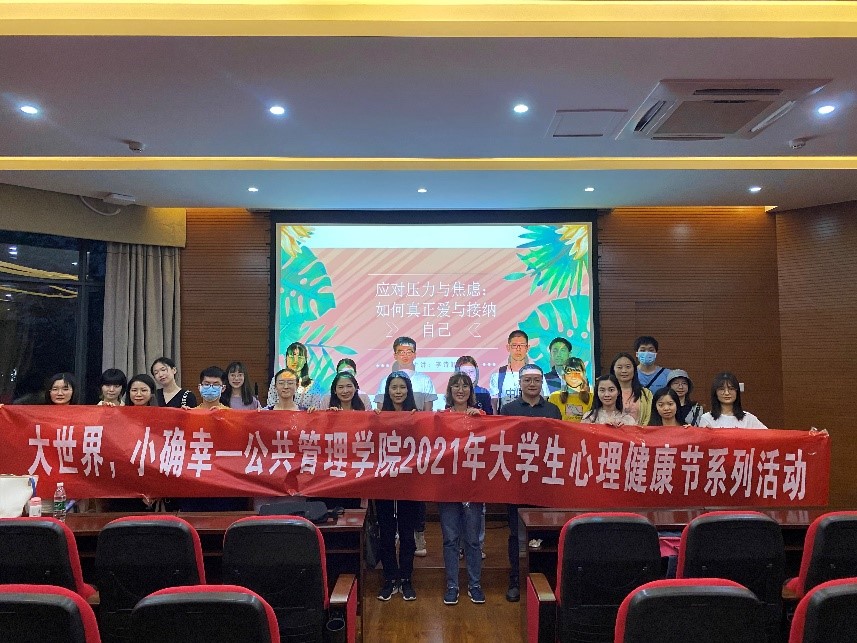 2021年5月19日19:00,“大世界、小确幸”太阳集团tyc97282021年大学生心理健康节“赠你一些小知识”系列讲座之应对压力与焦虑:如何真正爱和接纳自己在望江校区工学图书馆五楼报告厅成功举办。ok138cn太阳集团社会学与心理学系副教授李诗颖老师应邀担任本次讲座嘉宾。本次讲座由太阳集团tyc9728党委副书记杨磊老师主持,全校师生积极参与了本次讲座。