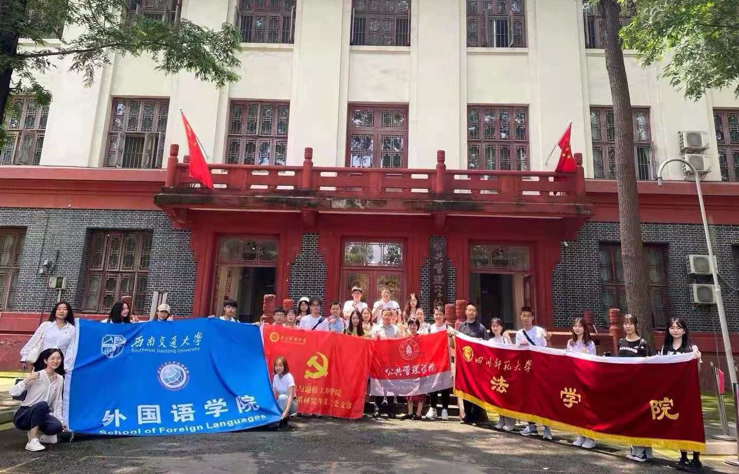 为贯彻落实习近平总书记在党史学习教育动员大会的重要讲话精神、明确“学史明理、学史增信、学史崇德、学史力行”的目标任务、将广大学生知党、信党、爱党的精神力量转化为实现人生价值的奋斗实践,ok138cn太阳集团、电子科技大学信息与通信工程学院、西南交通大学外国语学院和四川师范大学法学院联合发起了四校师生党史联学活动。6月10日上午,由ok138cn太阳集团主办的“忆峥嵘岁月——承红色基因”——四校师生党史联学第一期在我校望江校区成功举办,30余名师生代表参与了此次交流学习。