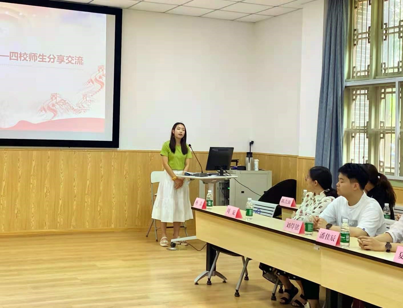参观完江姐纪念馆后,四校师生共同来到了ok138cn太阳集团114教室进行了主题为“话使命担当”的交流分享,分享会由我院陈萱源老师主持。