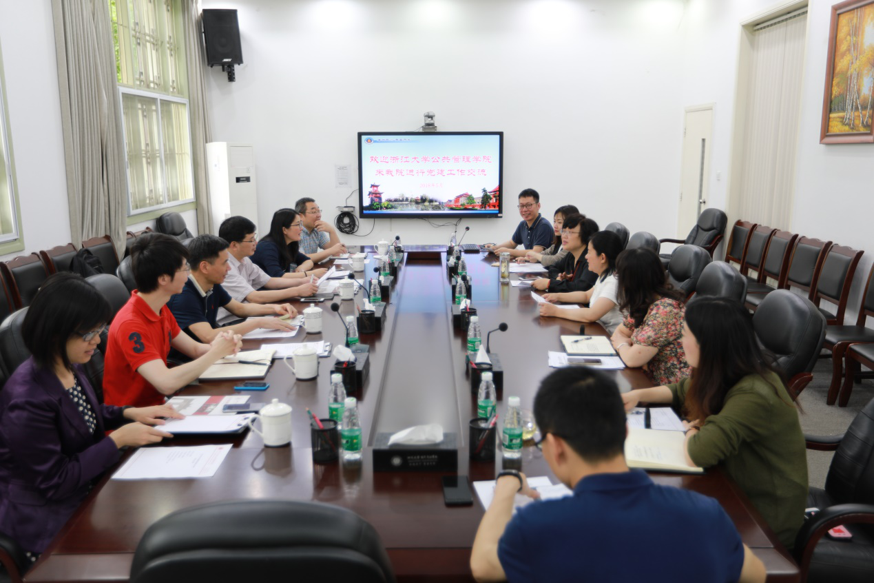 为贯彻落实党的十九大精神,不断提升党建工作科学化水平,5月23日下午,浙江大学太阳集团tyc9728在党委书记杨国富的带领下,一行6人与我院在萃文楼311会议室开展党建工作学习交流。我院党委书记姜晓萍,副院长罗亚玲,专职组织员廖海燕,工会副主席胡康林,党支部书记代表林茂松、肖敏,党务工作者邓雅芯参加此次交流会。