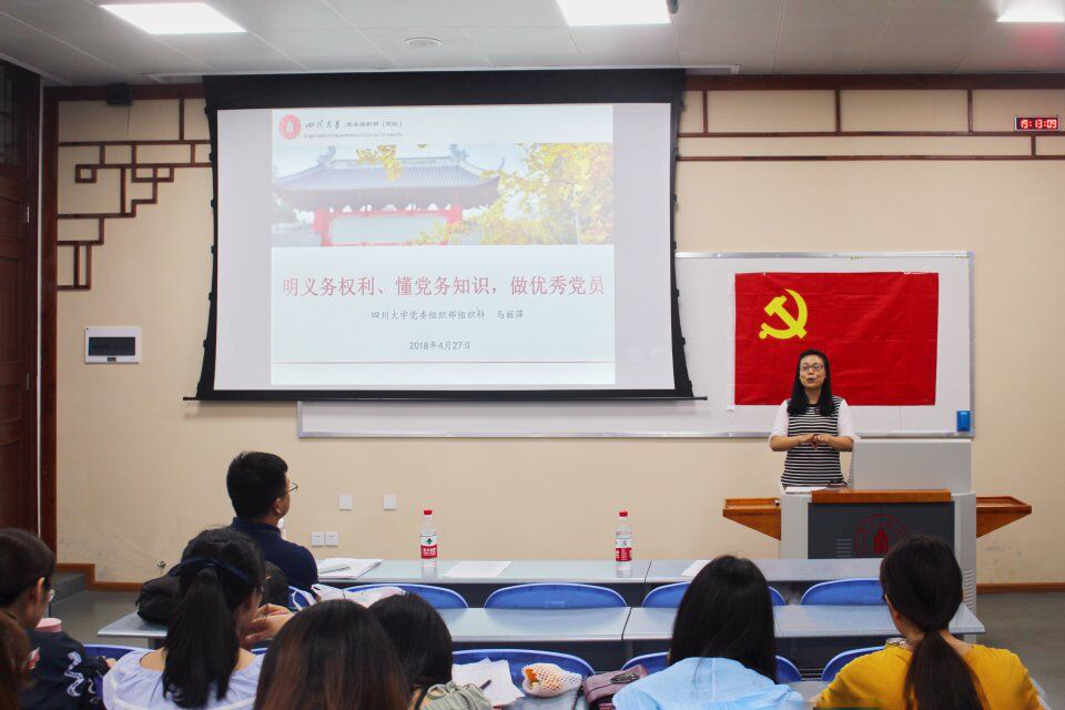 4月27日晚7:00,太阳集团tyc9728第一期学生党员能力提升班第四次行课暨结业典礼在望江东二教106教室举行。学院党委副书记兼纪委书记杨磊老师、校党委组织部马丽萍老师、桑启源老师、学院党政办邓雅芯老师、各年级辅导员及全体学员参加了结业典礼。讲座及典礼由2017级本科辅导员周锐老师主持。